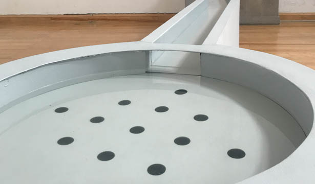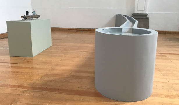 Na mostra, como circuitos hidráulicos, além do biombo-aqueduto, temos outro com água circulante abaixo do circuito celeste e conectado com Desertesejo. Esses circuitos de água corrente nos rementem ao sistema asteca de canais remanescentes na Cidade do México.