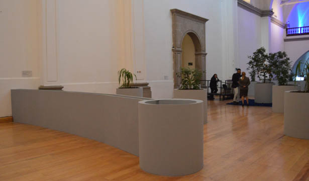 Este Biombo- aqueduto, com bombeamento de água na parte superior, separa em dois ambientes a Nave Central e marca a passagem/divisão entre as obras Jardin Alameda e Encontros. O trabalho foi inspirado no biombo de autor anônimo do Museo Franz Mayer, que está na mesma praça. Na peça do Séc. XVII temos como inscrição em uma face “La Muy Noble y Leal Ciudad de México” e do outro lado a “Conquista de México”.