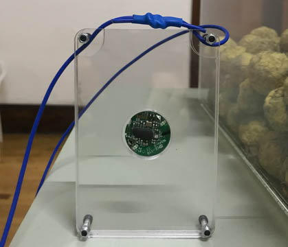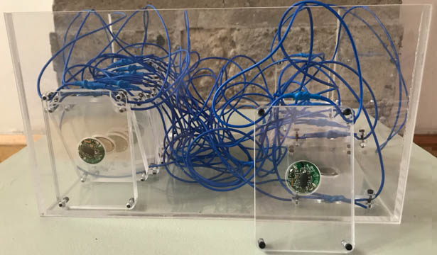 Ao ingressar, ao lado do circuito impresso na parede, o visitante terá acesso a um colar-sensor equipado com beacon (pequeno dispositivo que emite sinal Bluetooth), que captará parte de seu recorrido que ficará assinalado aos demais visitantes em um mapa disposto na saída da exposição, como marca de sua presença e circulação.